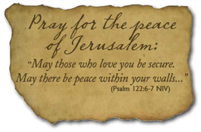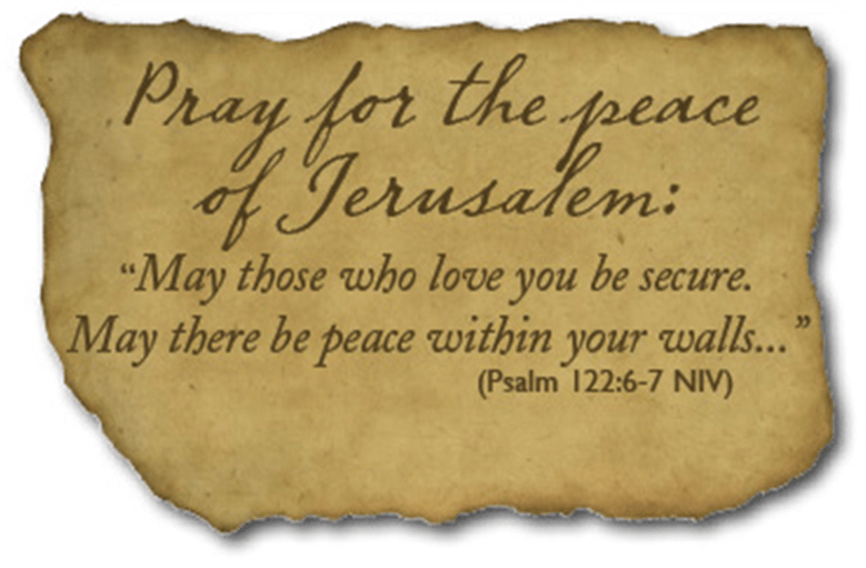 | Psalm 122:6-9 6 Pray for the peace of Jerusalem: “May those who love you be secure. 7 May there be peace within your walls and security within your citadels.” 8 For the sake of my brothers and friends, 9 For the sake of the house of the LORD our God, |