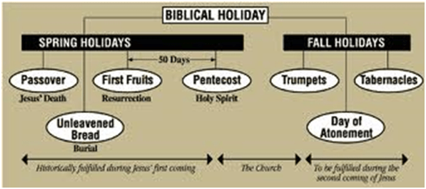 | All Seven Festivals are connected with each other… And they begin in March/April The Passover – March/April – the Passover, daybefore the Feast of Unleavened Bread. Held the day before the Feast of Unleavened Bread and Pentecost (first fruits). Feast of Unleavened Bread – March/April AKA Feast of Unleavened Bread and First Fruits Celebrated for 7 days. Feast of First Fruits and Pentecost AKA Latter First Fruits of the Wheat Harvest The Fall Feasts Feast of Trumpets – this year on September 27 – Rosh Hash Anah A day of blowing trumpets which were traditionally used to call people together (Numbers 10). In Matthew 24:31 we learn that Yahshuah will gather His elect from the four winds of the earth at His return. “And the LORD spake unto Moses, saying, Speak unto the children of Israel, saying, In the seventh month, in the first day of the month, shall ye have a sabbath, a memorial of blowing of trumpets, an holy convocation. Ye shall do no servile work therein: but ye shall offer an offering made by fire unto the LORD.” (Lev 23:23-25) Day of Atonement Feast of Tabernacles The Last Great Day – A feast where Yahshua finishes His work and turns all authority and power on earth over to His Father. It is a picture of post-millennial earth and a time when Yahweh will bring His own throne to the planet in the New Jerusalem (Revelation 21). |