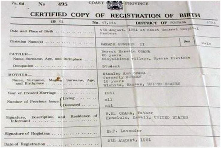 BARACK OBAMA’S KENYAN BIRTH CERTIFICATE! Here it is, folks! The document we have been waiting for! Now if only SOMEONE in Congress or the Supreme Court will act on this! Spread this around…..if these documents are as authentic as they certainly seem to be, Obama is NOT qualified to be our President and he sits in the White House illegally! This is what Obama has spent almost $2M (so far) to hide… Here’s a close-up of the top of the document where you can plainly read his name and his parent’s names, etc…. A British history buff was asked if he could find out who the colonial registrar was for Mombasa in 1961. After only a few minutes of research, he called back and said “Sir Edward F. Lavender” Note the same name near the bottom of the photo above. Source(s)” Kenya Dominion Record 4667 Australian library.” And here’s a close-up of the bottom of the document where you can read “Coast Providence of Kenya” and the official signature of the Deputy Registrar… The above document is a “Certified Copy of Registration of Birth”, but below is a copy of the actual Certificate of Birth… the real-deal legal kind of certificate. The Mombasa Registrar of Births has testified that Obama’s birth certificate from Coast Province General Hospital in Mombasa is genuine. This copy was obtained by Lucas Smith through the help of a Kenyan Colonel who got it recently directly from the Coast General Hospital in Mombasa, Kenya. Here it is….. Note the footprint!! The local Muslim Imam in Mombasa named Barack with his Muslim middle name Hussein so his official name on this certificate is Barack Hussein Obama. The grandmother of Barack Hussein Obama, Jr. reveals the story of his birth in Mombasa, Kenya, a seaport, after his mother suffered labor pains while swimming at ocean beach in Mombasa… “On August 4, 1961 Obama’s mother, father and grandmother were attending a Muslim festival in Mombasa, Kenya. Mother had been refused entry to airplanes due to her nine month pregnancy. It was a hot August day at the festival so the Obama’s went to the beach to cool off. While swimming in the ocean his mother experienced labor pains so was rushed to the Coast Provincial General Hospital, Mombasa, Kenya where Obama was born a few hours later at 721 pm on August 4, 1961. Four days later his mother flew to Hawaii and registered his birth in Honolulu as a certificate of live birth which omitted the place and hospital of birth.” Letter from Kitau in Mombasa, Kenya… “I happen to be Kenyan. I was born 1 month before Obama at Mombasa medical center. I am a teacher here at the MM Shaw Primary School in Kenya. I compared my birth certificate to the one that has been put out by Taitz and mine is exactly the same. I even have the same registrar and format. The type is identical. I am by nature a skeptical person. I teach science here and challenge most things that cannot be proven. So I went to an official registrar today and pulled up the picture on the web. They magnified it and determined it to be authentic. There is even a plaque with Registrar Lavenders name on it as he was a Brit and was in charge of the Registrar office from 1959 until January of 1964. The reason the certificate says republic of Kenya is that we were a republic when the “copy” of the original was ordered. I stress the word “copy.” My copy also has republic of Kenya. So what you say is true about Kenya not being a republic at the time of Obama’s birth, however it was a republic when the copy was ordered. The birth certificate is genuine. I assure you it will be authenticated by a forensic auditor. We are very proud Obama was born here. We have a shrine for him and there are many people who remember his birth here as he had a white mother. They are being interviewed now by one of your media outlets. Fortunately they even have pictures of his parents with him immediately after his birth at the Mombasa hospital with the hospital in the back ground. It will be a proud day for us when it is proven that he was born here and a Kenyan became the most powerful man in the world. I encourage anyone to come here and visit. I will be happy to take you and show you the pictures at the hospital myself as well as my document and many others that are identical to what Taitz posted. God Bless. Kitau” So, how much more proof do we need? Well, Here it is…{SJC} WELL, HERE IT IS…. Lolo Soetoro, Stanley Ann Dunham Soetoro, baby Maya Soetoro, and 9 year old Barry Soetoro.