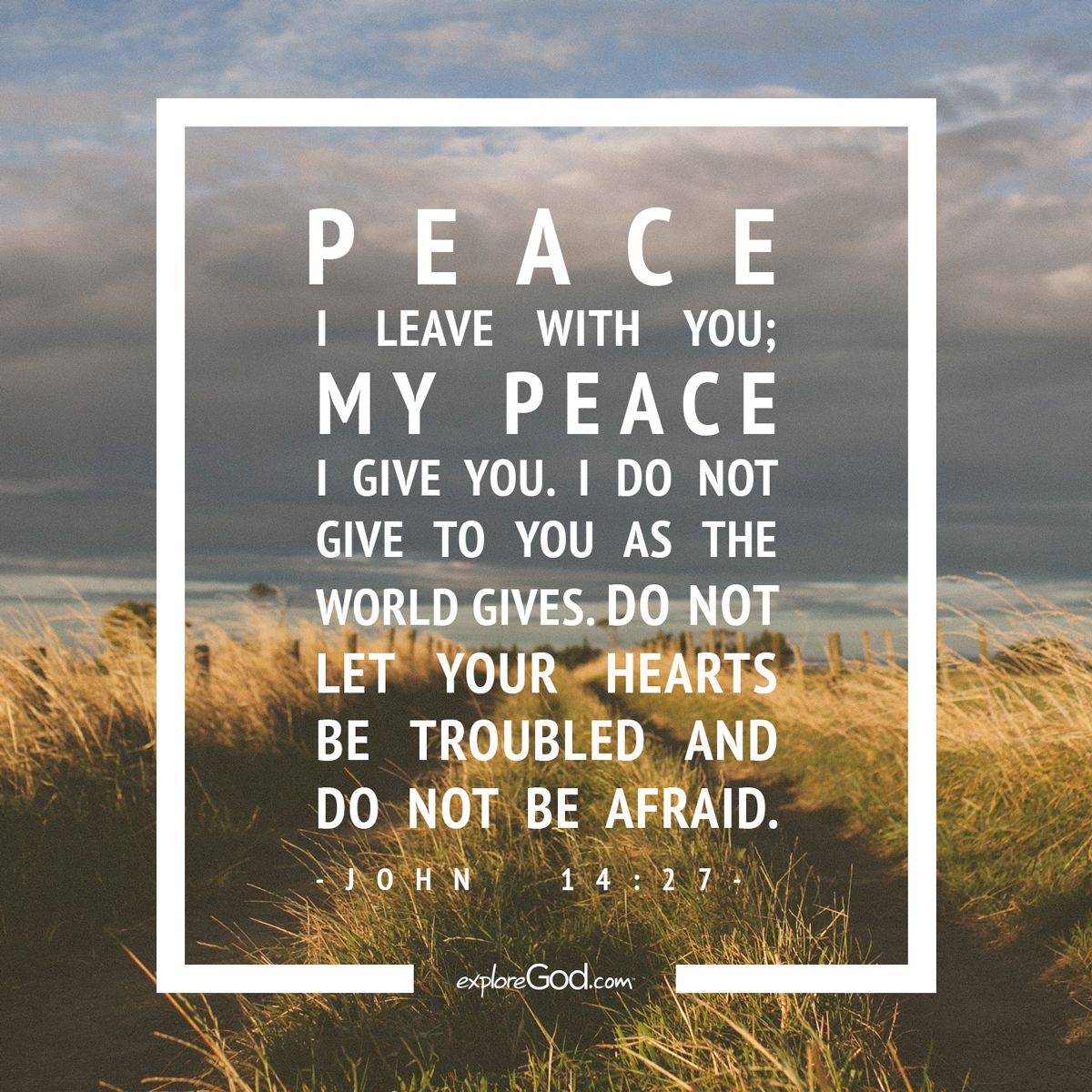 Jesus said in John 14:27, “Peace I leave with you; my peace I give you. I do not give to you as the world gives. Do not let your hearts be troubled and do not be afraid.”